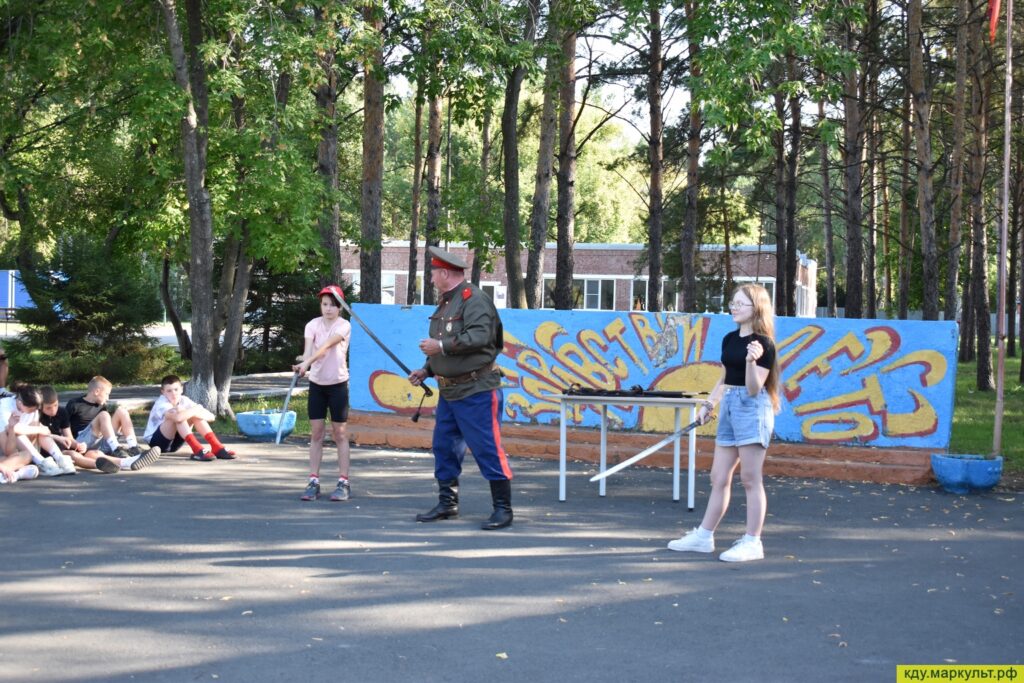 Герр Олег Кондратьевич рассказал о значении шашки в казачьей культуре и продемонстрировал основные приемы и техники. Участники получили возможность научиться основам фланкировки, что позволило им глубже понять казачьи традиции и навыки.