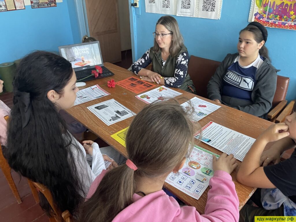 Ведущая Елена Владимировна Бернвальд рассказала детям о событиях трех дней, которые происходили в школе Беслана. Рассказ был подкреплен фотоматериалами. Так же был показан большой видеоролик о Беслане, о события тех дней.