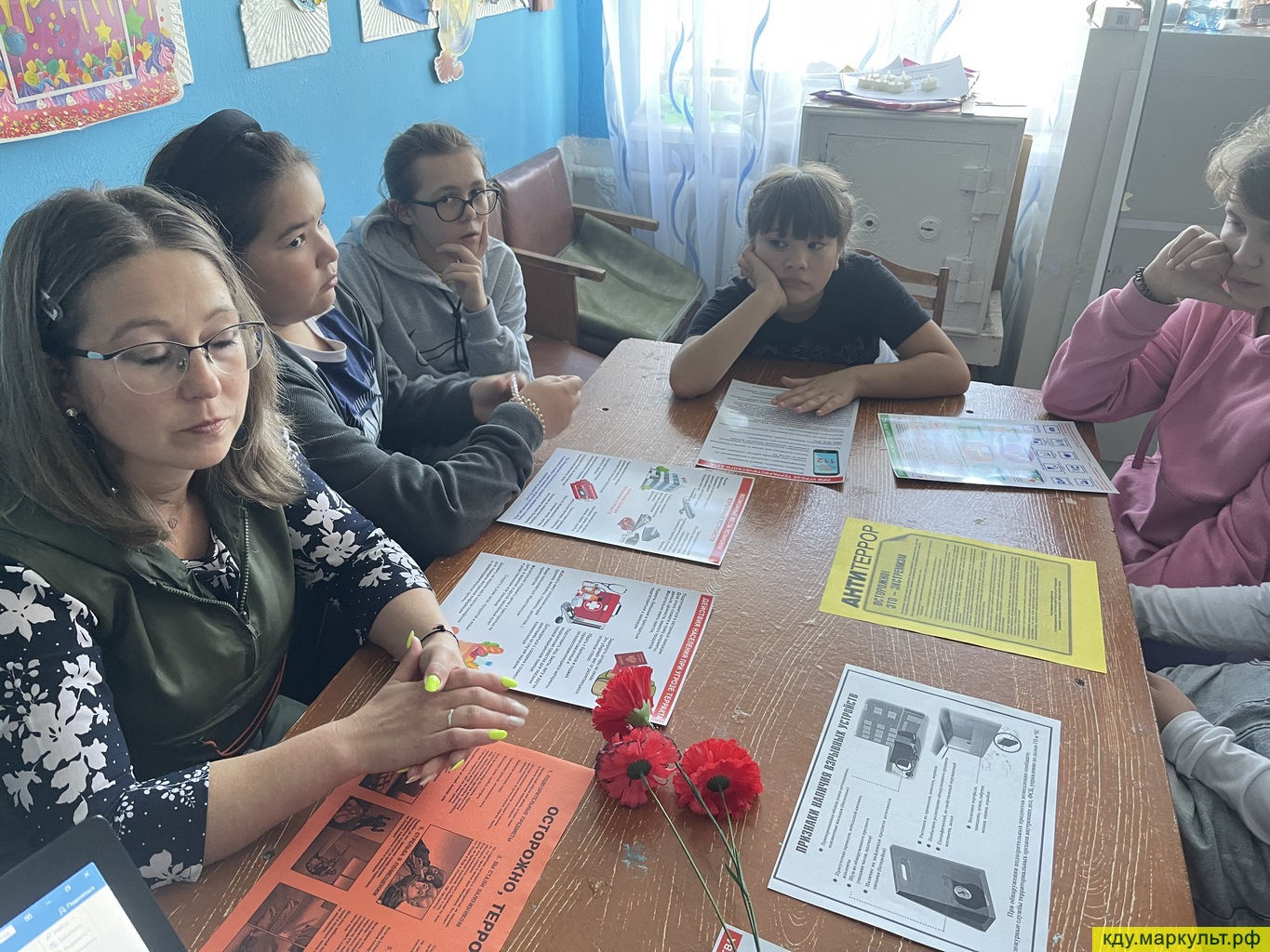 Ведущая Елена Владимировна Бернвальд рассказала детям о событиях трех дней, которые происходили в школе Беслана. Рассказ был подкреплен фотоматериалами. Так же был показан большой видеоролик о Беслане, о события тех дней.
