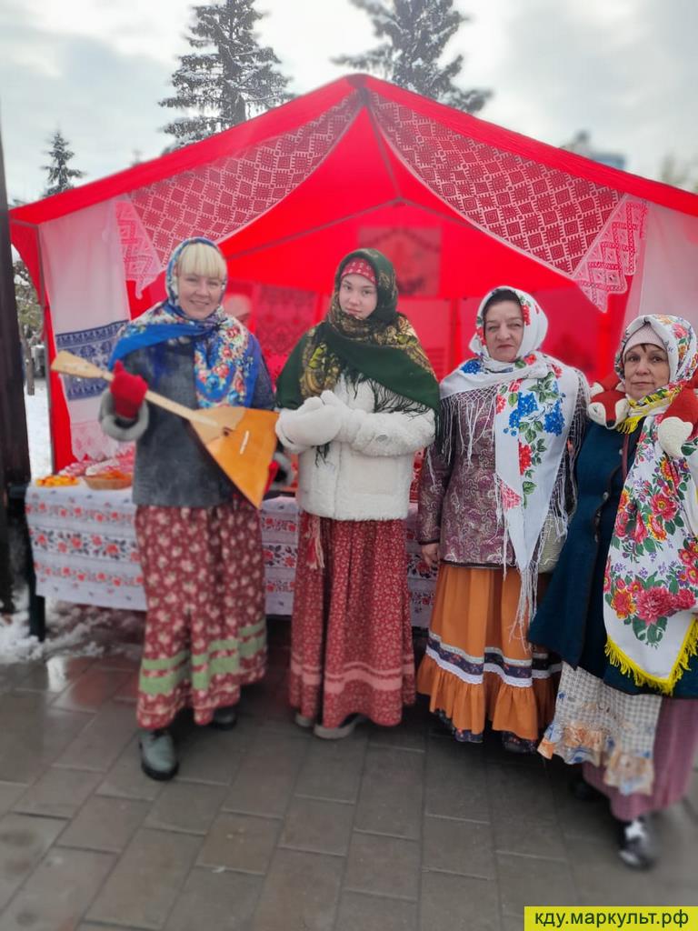 Гостей встречали вкусными угощениями и задорными частушками под балалайку от Купавы Синеокой, создавая атмосферу праздника и радости.