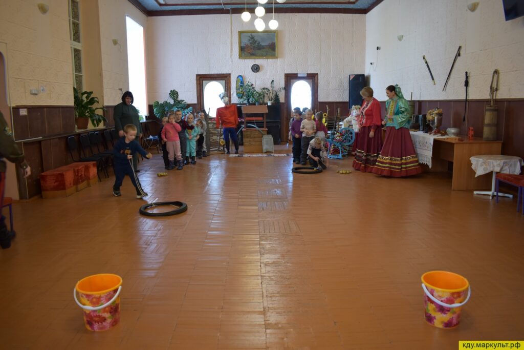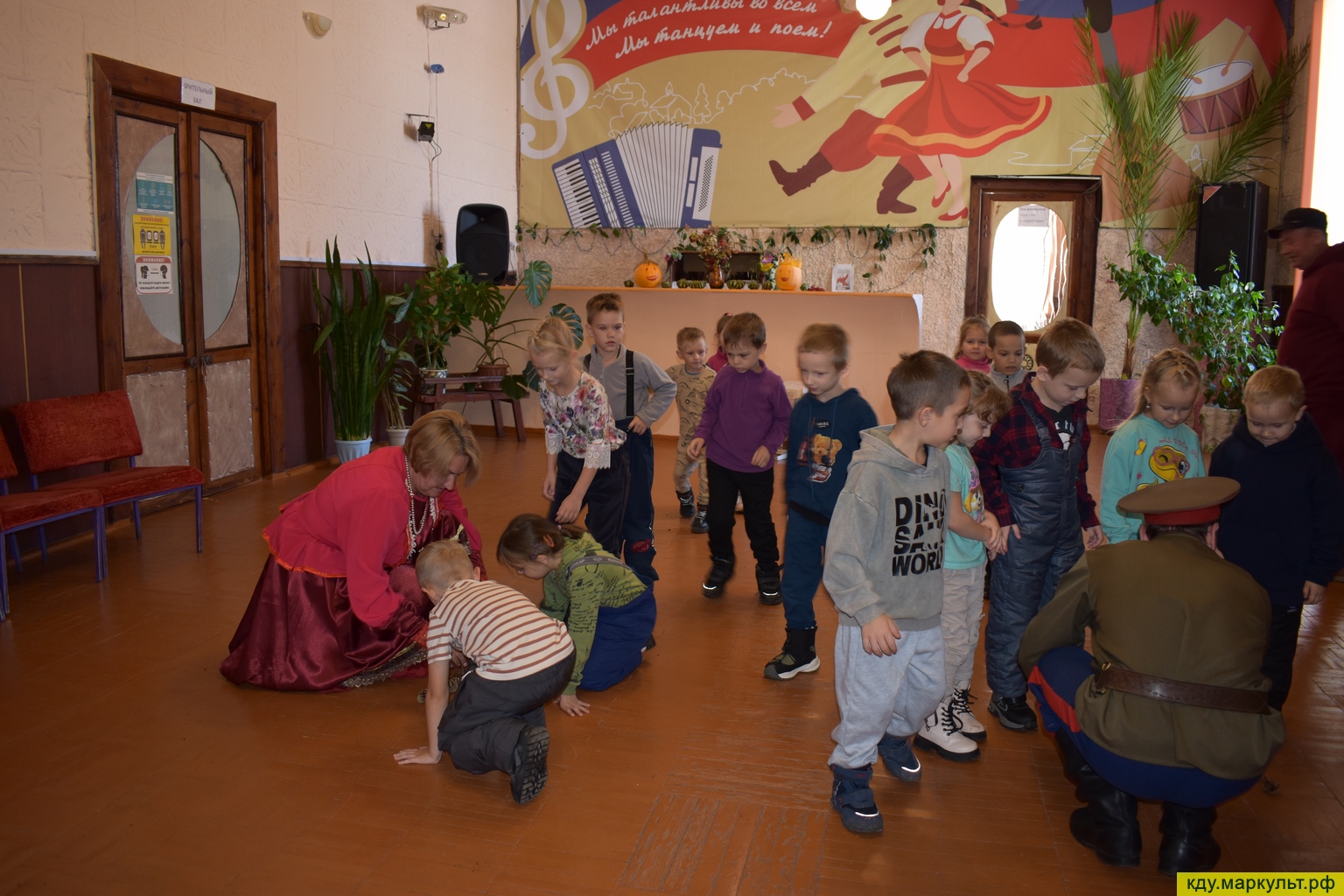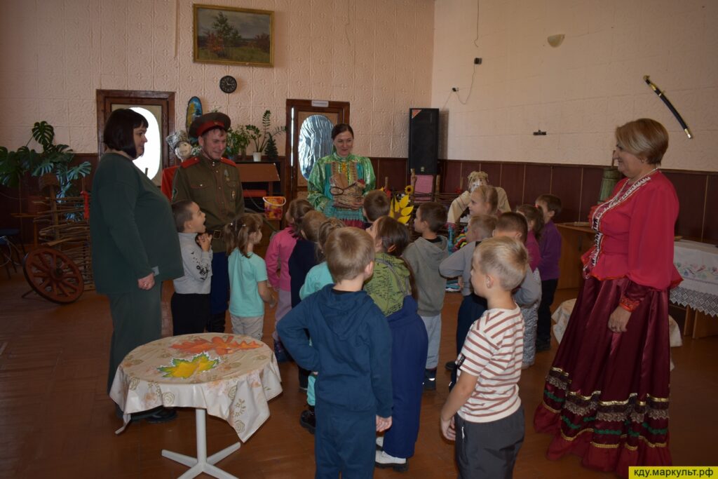 Хозяюшка пригласила всех детей на народные забавы и весёлые игры, такие как «Шарф покров», «Перевези урожай», «Собери листочки» и другие. Все весело и задорно провели время вместе. В конце мероприятия хозяюшка угостила ребят сладостями. Завершилось мероприятие общим фото.