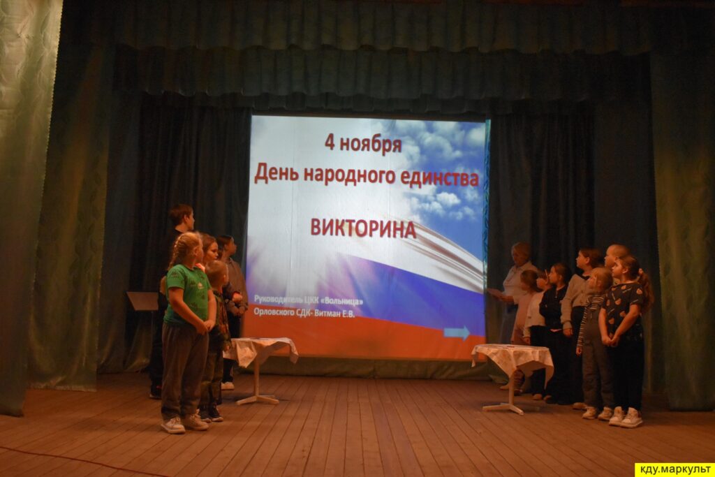 В рамках празднования Дня народного единства для участников клубных формирований Орловского СДК состоялась увлекательная викторина под названием «День народного единства». Это мероприятие было направлено на формирование у подрастающего поколения чувства патриотизма, понимания ценности национального единства и взаимоуважения между народами.