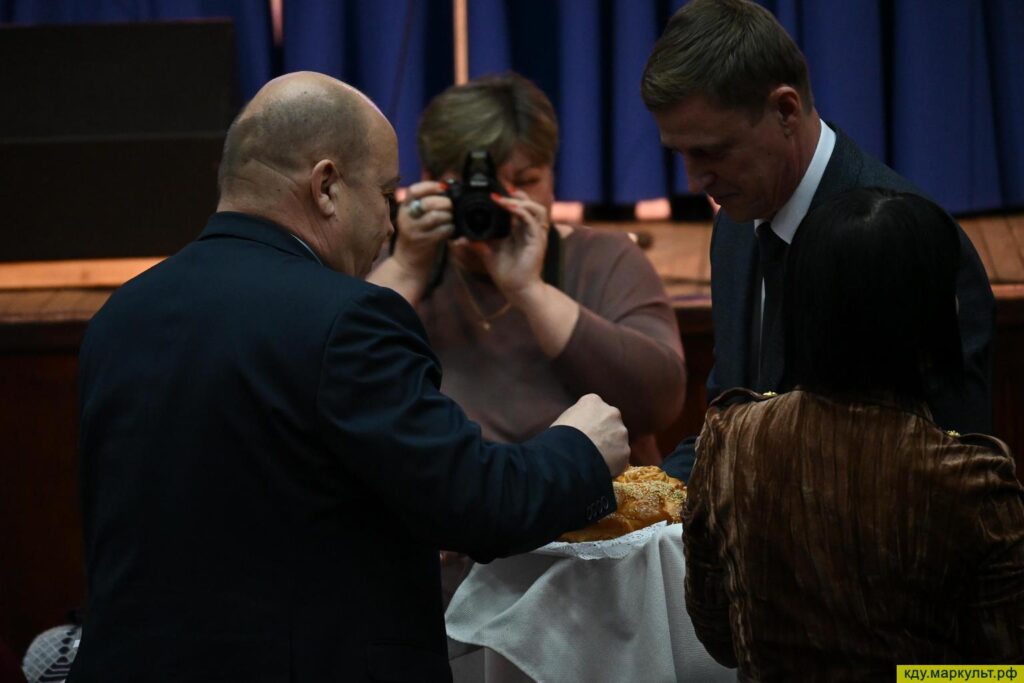 Под звуки зажигательной хороводной песни «Уж вы гости» Народный Хор ветеранов вынесли пышный каравай «Урожай – 2025». Этот щедрый дар был с почестями вручён Главе Марьяновского района Аркадию Викторовичу Ефименко, что стало ярким моментом праздника.