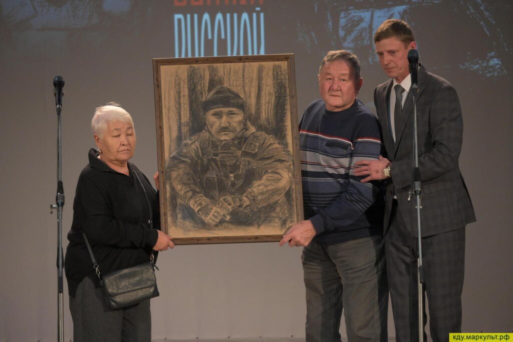 Родителям и близким Героев вручили копии портретов «Уголь земли Русской». Церемонию вручения провел Глава Марьяновского района Аркадий Викторович Ефименко.