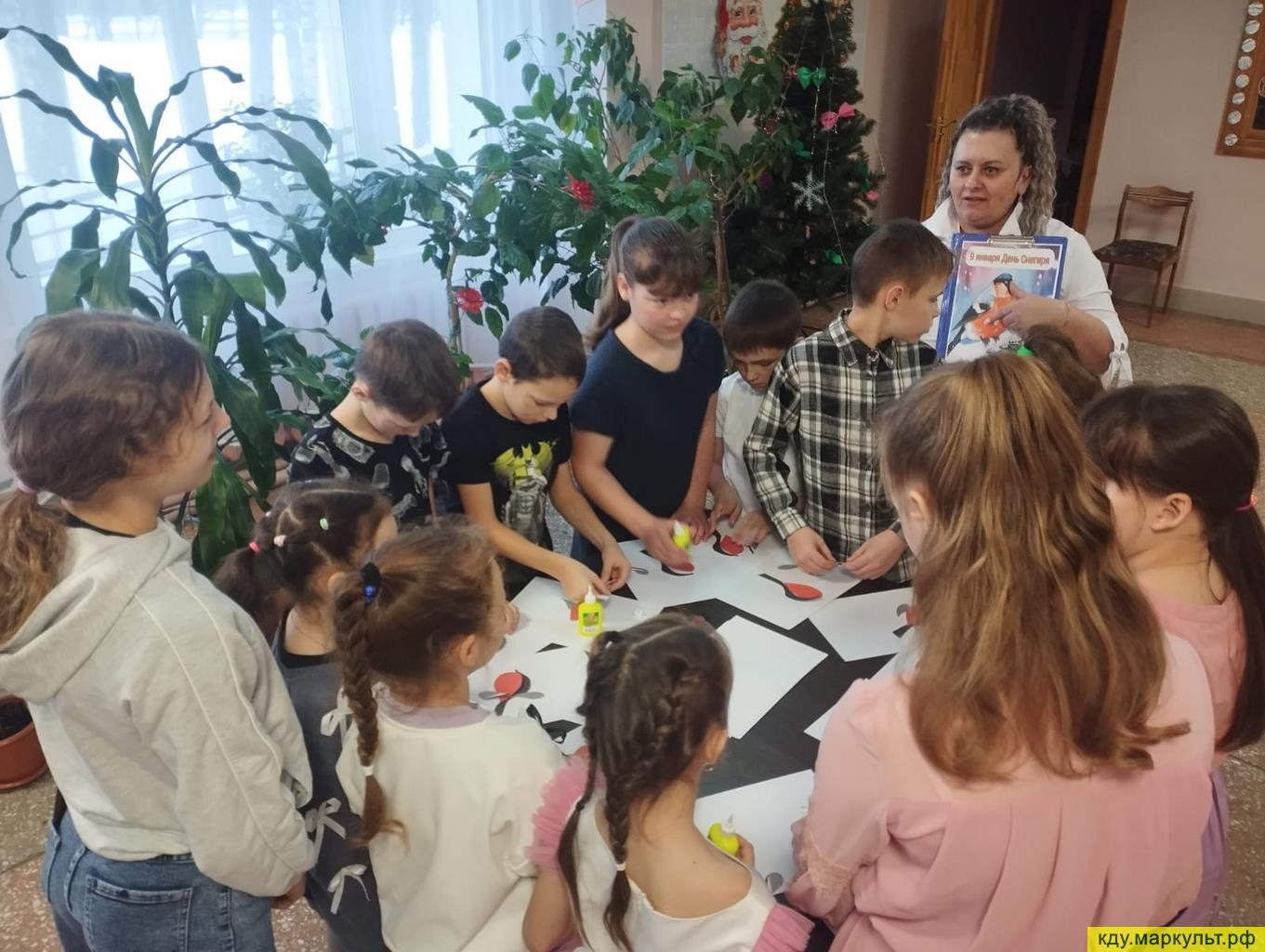 9 января в Москаленском СДК, для детей в рамках кружка «Каляка Маляка», руководителем кружка Жуковой Е. Н. был проведён замечательный праздник — День Снегиря! В ходе праздника с детьми была проведена беседа о том, каким образом зимующие птицы выживают зимой и какую важную роль они играют в нашей жизни. Особое внимание уделили снегирям. Ребята с удовольствием делились своими наблюдениями и рассматривали картинки снегирей.