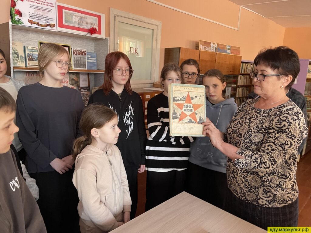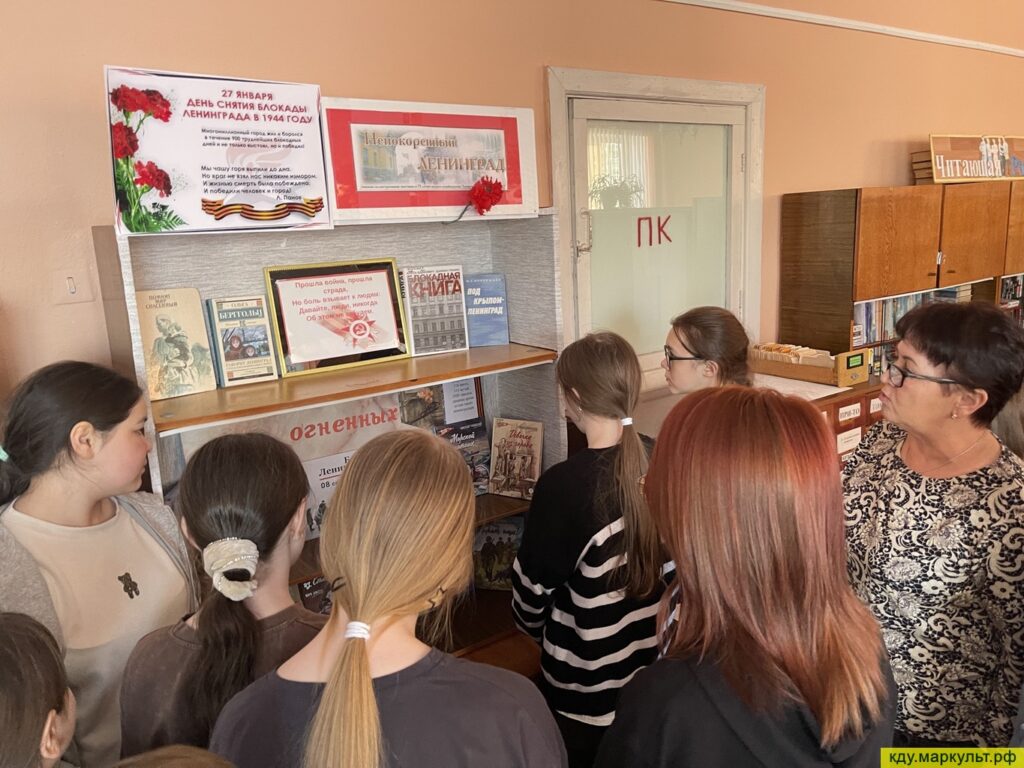 Вниманию ребят был представлена выставка литературы о жителях и защитниках блокадного Ленинграда, а также образец хлеба.
