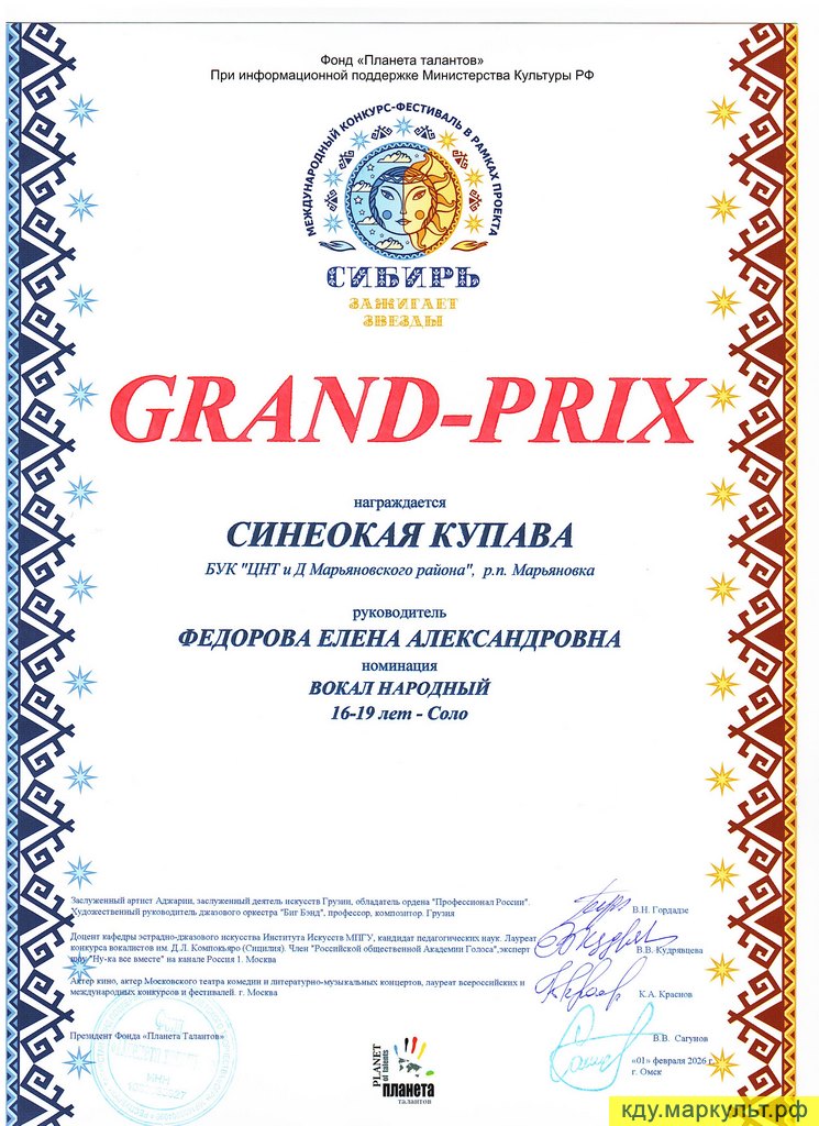 Гран-при – Купава Синеокая – солистка Марьяновского районного Дома культуры (рук-ль: Фёдорова Е.А.)