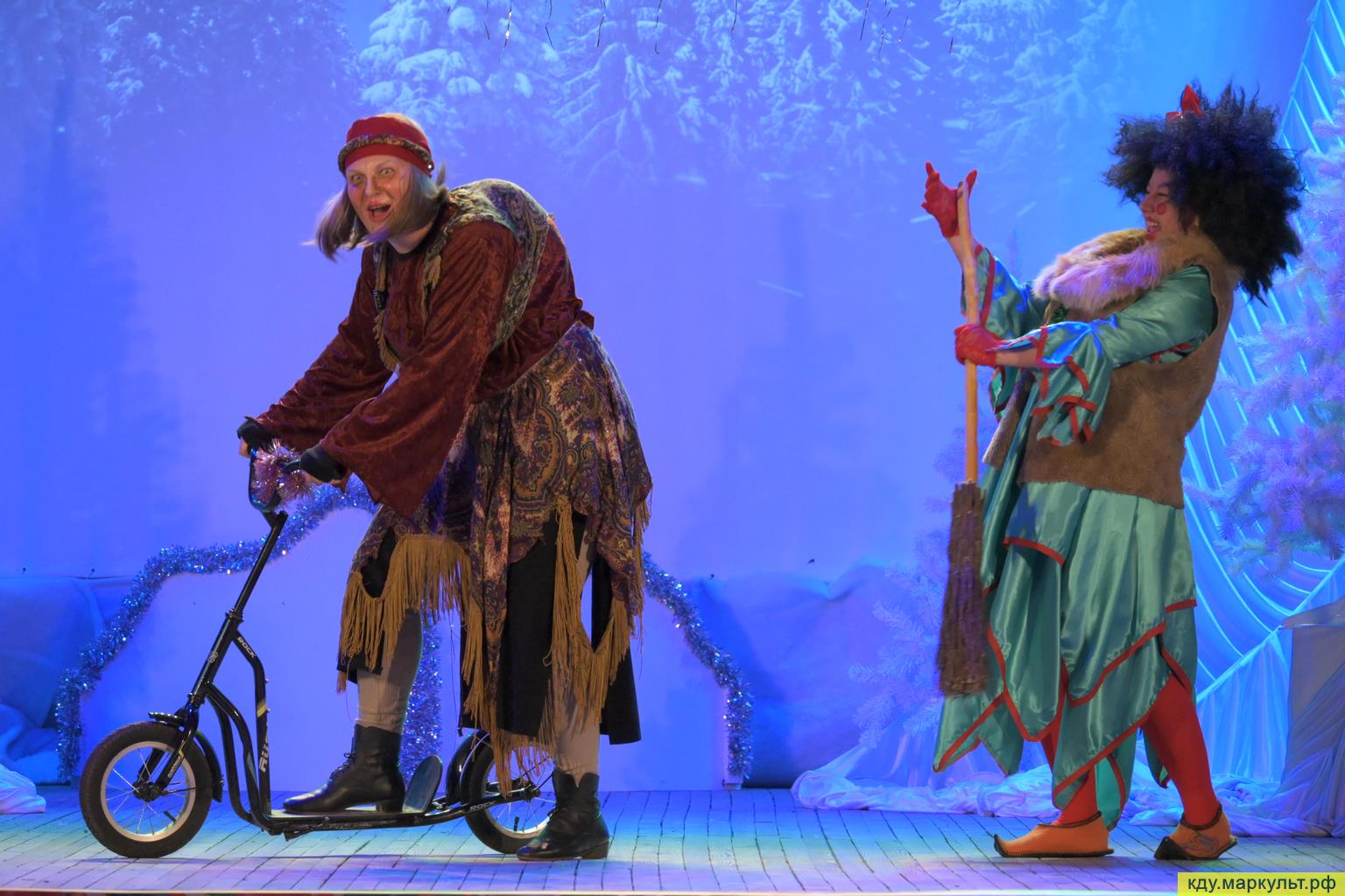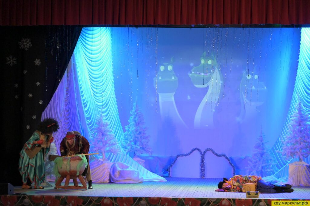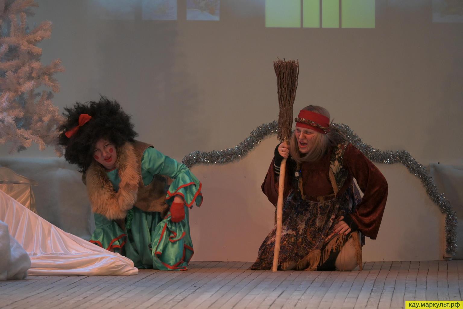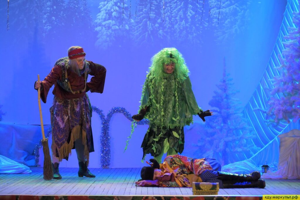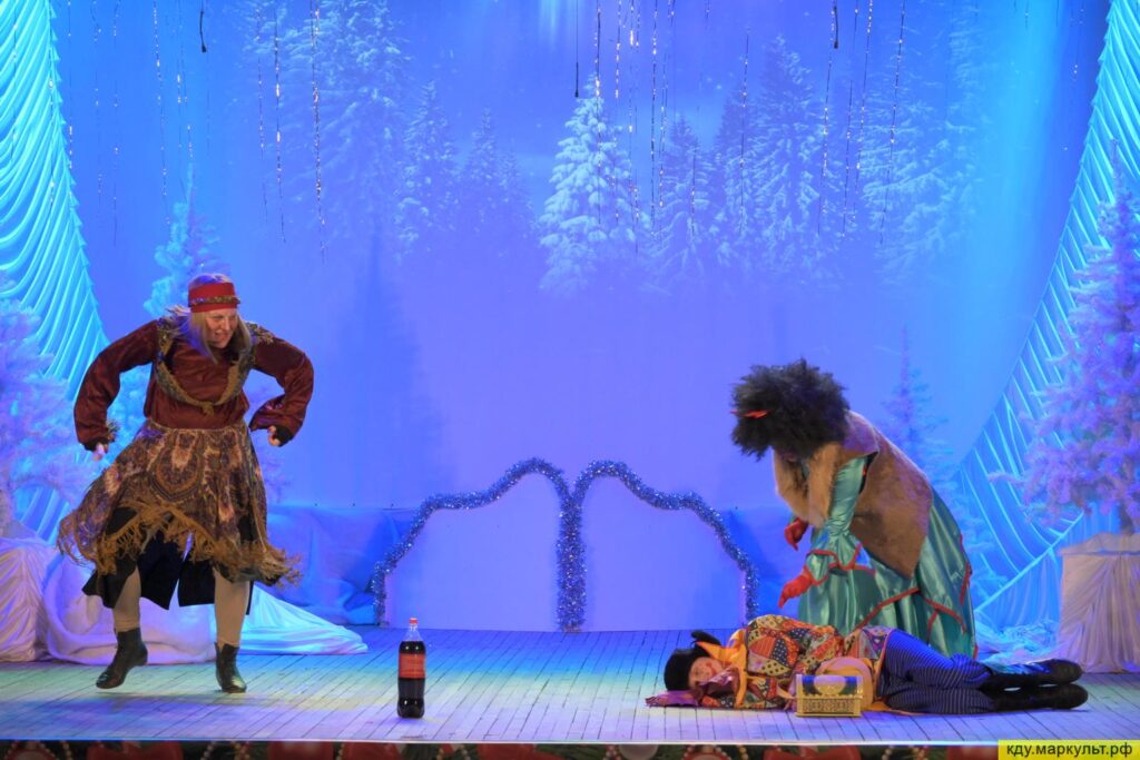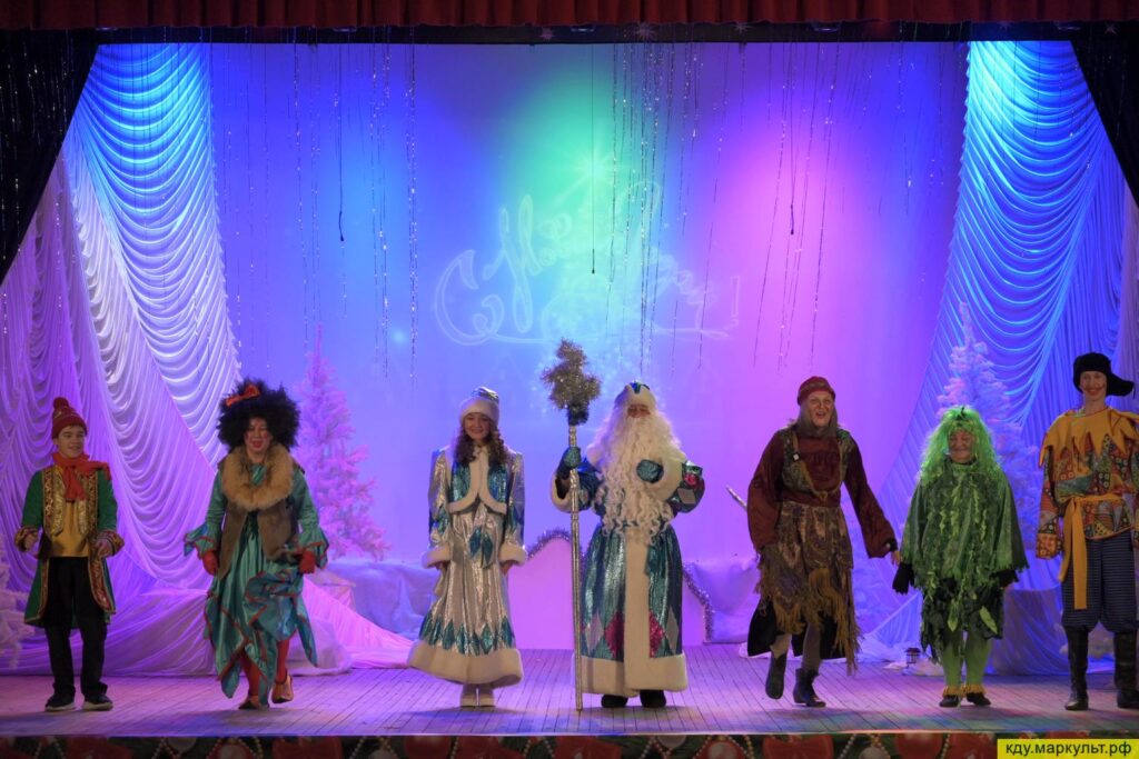 В постановке приняли участие сотрудники Районного дома культуры (Дед Мороз – Горбунов Николай, Баба яга – Шульц Галина, Кикимора – Соколова Татьяна), актриса народного театра «Своя версия» (Ежка – Котова Надежда) и юные таланты из театральной студии «Проект М» (Вовка – Битехтин Виктор, Снегурочка – Сухова Дарья и Петруша – Кохонец Денис) Режиссёром-постановщиком выступила Марина Битехтина.
