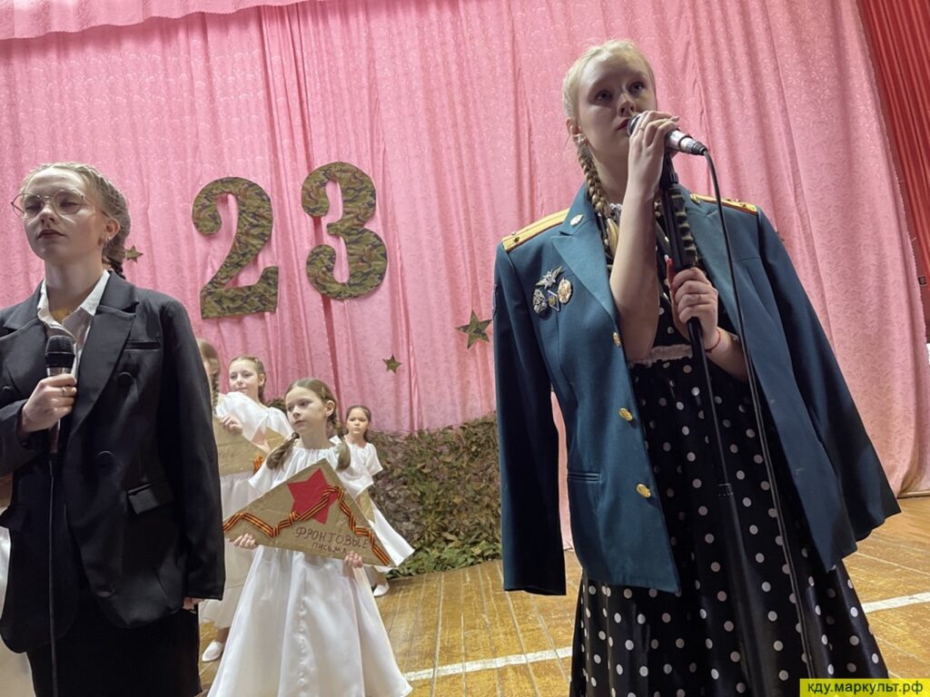 На протяжении всего концерта со сцены звучали теплые поздравления в адрес защитников отечества, были исполнены музыкальные номера «А зори здесь тихие», «Спецназ», «Пограничницы» детским танцевальным коллективом «Топотушки» руководитель Наталья Александровна Тимина. В исполнении вокального коллектива «Ладушки», руководитель Елена Владимировна Бернвальд, прозвучали песни «Защитник России», «Письма», «Праздник настоящих мужчин».