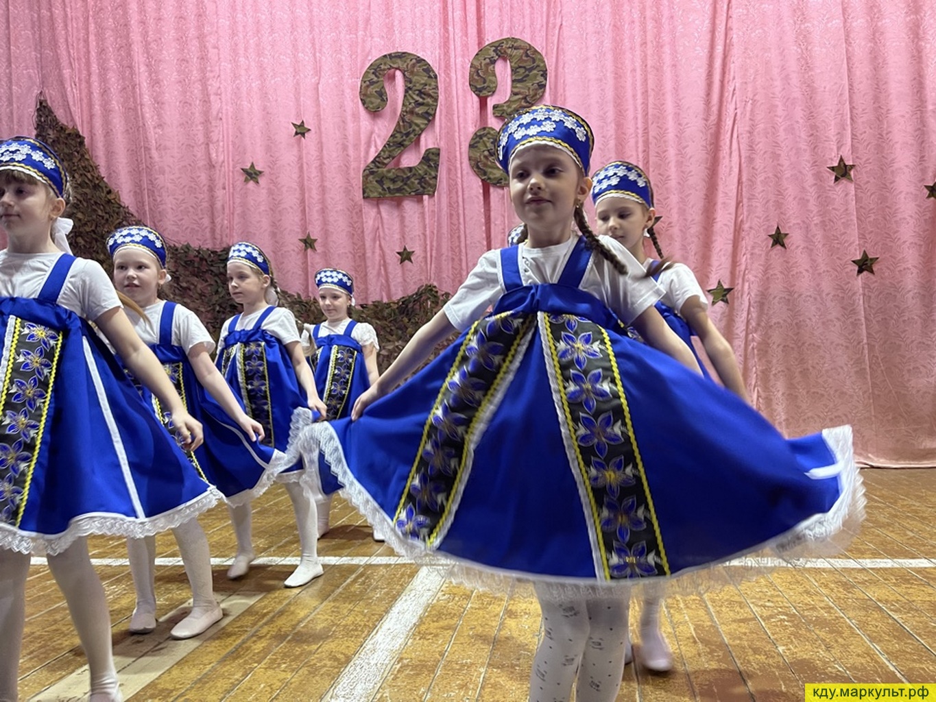 На протяжении всего концерта со сцены звучали теплые поздравления в адрес защитников отечества, были исполнены музыкальные номера «А зори здесь тихие», «Спецназ», «Пограничницы» детским танцевальным коллективом «Топотушки» руководитель Наталья Александровна Тимина. В исполнении вокального коллектива «Ладушки», руководитель Елена Владимировна Бернвальд, прозвучали песни «Защитник России», «Письма», «Праздник настоящих мужчин».