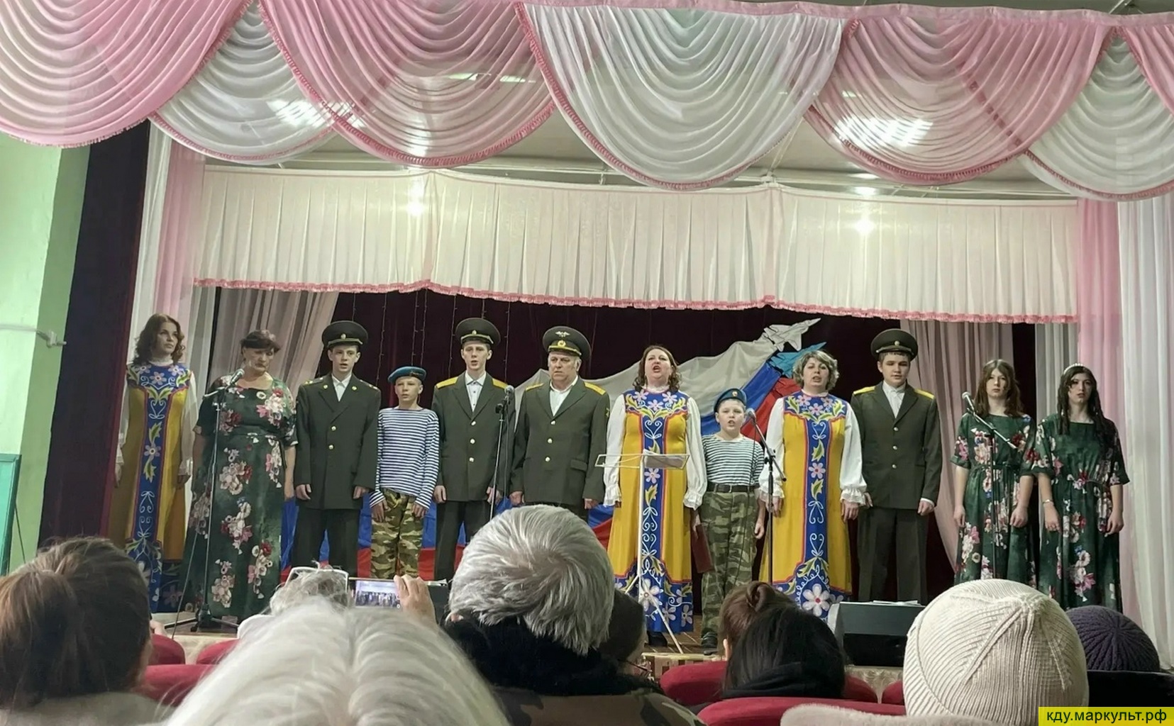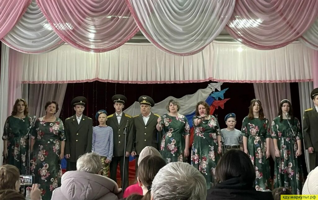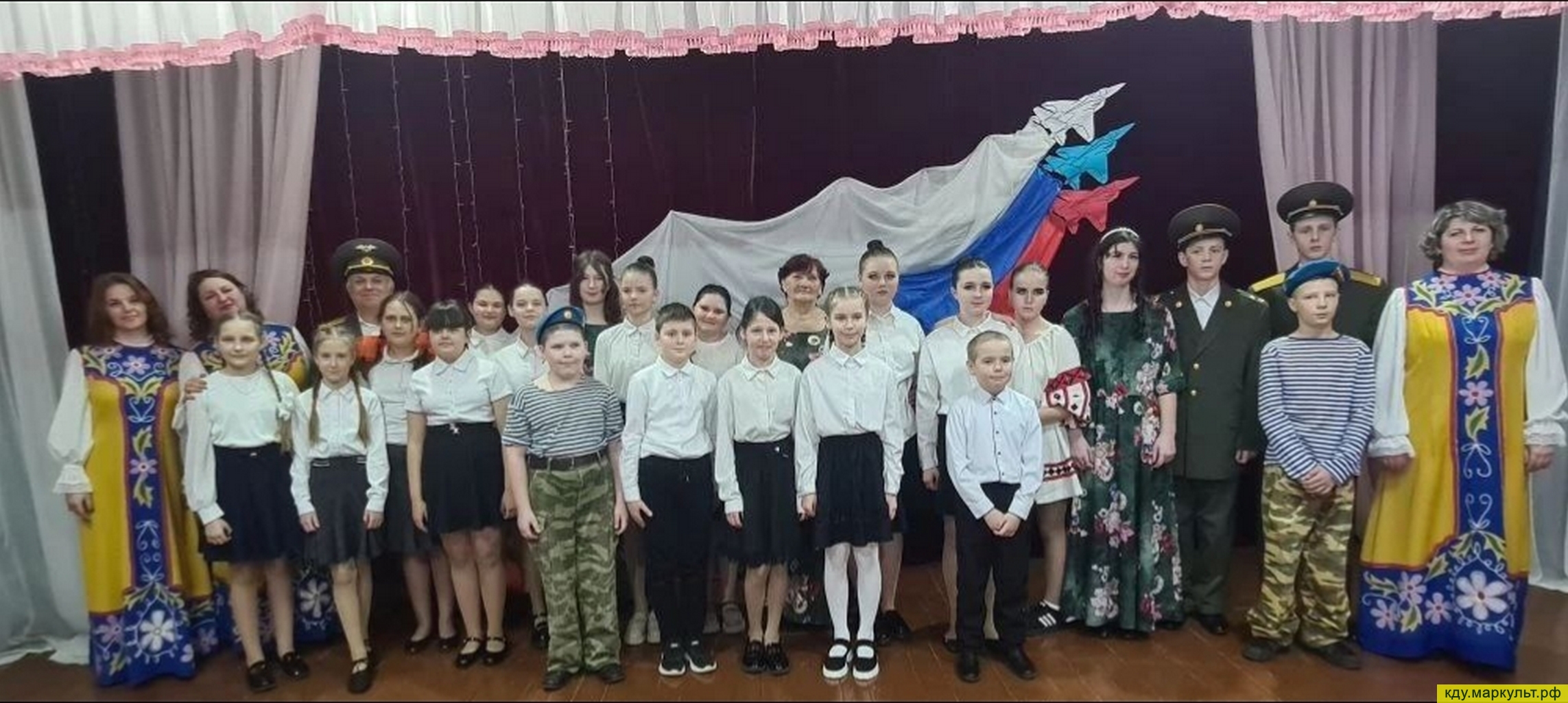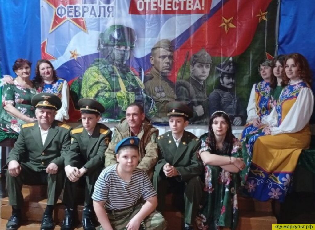 Артисты поздравили с этим замечательным праздником всех, кто сегодня стоит на защите наших рубежей, тех, кто прошёл ряды срочной службы и находится в запасе и тех, кому ещё только предстоит пополнить ряды наших защитников. Таким образом, поздравления получили все мужчины! На мероприятии присутствовал участник СВО Анатолий Михайлович, гостя поздравили и с огромным трепетом подарили ему песню. Коллективы ансамбля «Патриот» и ансамбля «Ивушки» сделали памятное фото с Героем нашего времени.