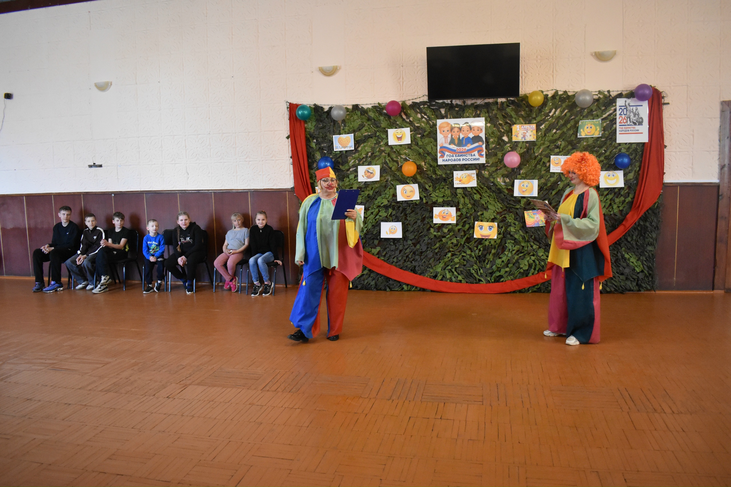 1 апреля в Орловском СДК прошла конкурсно- игровая программа «День смеха и весёлых шуток». В гости к детям пришли клоуны Веселинка (Екатерина Саенко) и Тёпа (Ирина Роот) с весёлыми играми и конкурсами. В начале программы клоуны познакомились с ребятами, и пригласили всех на весёлый танец приветствие «Привет». Затем дети с огромным удовольствием участвовали в веселых играх и эстафетах «Покажите высший класс», «Кто дальше дунет», «Кто быстрей возьмёт игрушку», «Кто быстрей переплывёт на льдине», разгадывали запутанные загадки, танцевали. После все вместе сделали фото на память с забавными и весёлыми клоунами. Праздничное мероприятие доставило детям радость и удовольствие от участия в конкурсах и забавах.