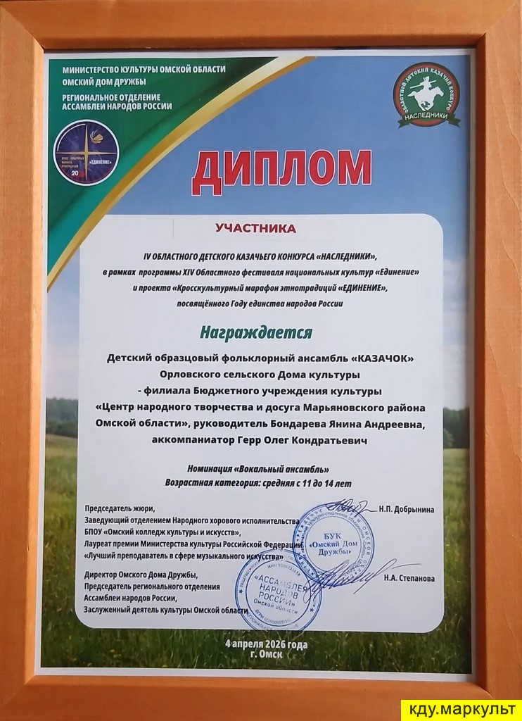 4 апреля 2026 года Омском Доме Дружбы прошел финал IV областного детского казачьего конкурса «Наследники»!